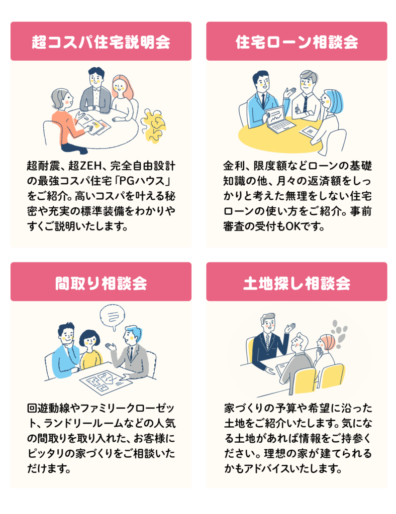 ご来場のお客様限定のプレゼントや、お得な特典をご用意しておりますので、ぜひこの機会にPGハウスへご来場ください!