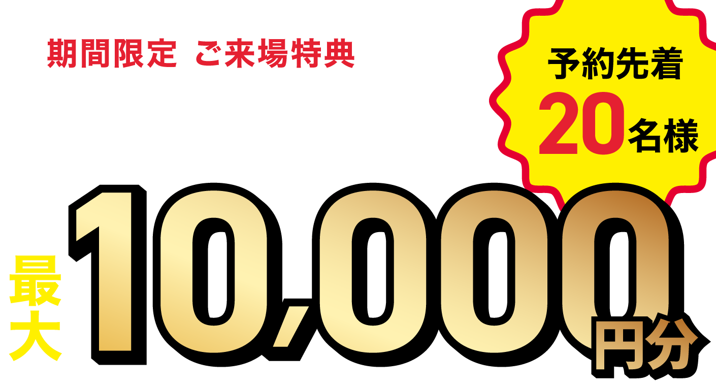 ※1)初回のご来場時に5,000円分プレゼントいたします。ただし、お一人でご来場の場合は2回目のご来場時(事前審査申込時)に進呈となります。