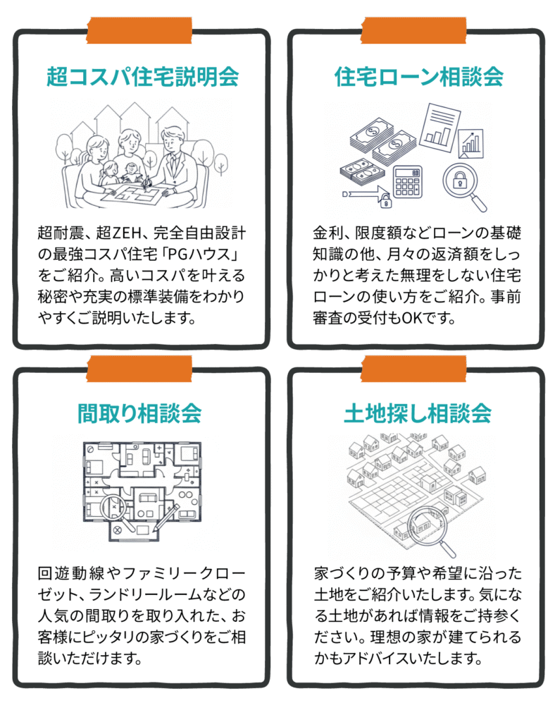 ご来場のお客様限定のプレゼントや、お得な特典をご用意しておりますので、ぜひこの機会にPGハウスへご来場ください!